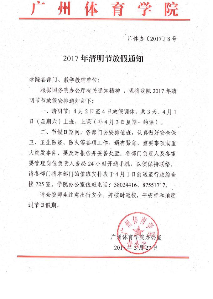2017年清明节放假通知
